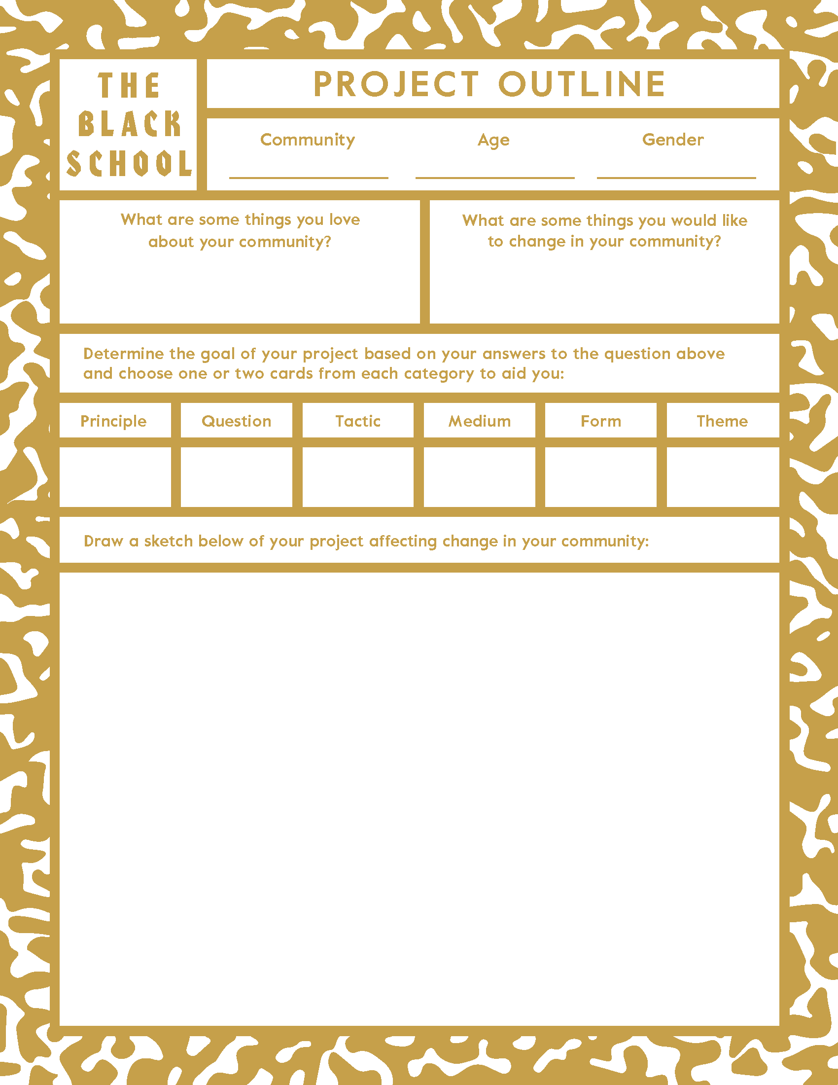 The process deck is to be used in tandem with the project outline (left) to imagine how projects can affect change in communities.